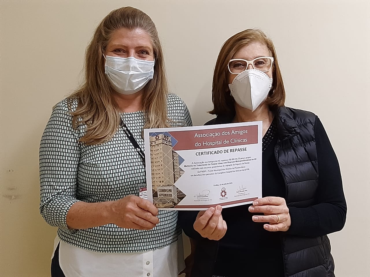 Os Amigos do HC entregaram o projeto “Melhoria no tratamento de pessoas idosas com doenças mieloproliferativas”, realizado com recursos do Fundo Municipal da Pessoa Idosa (FMPI) por meio da destinação do imposto de renda pelas parceiras Nórdica Veículos e Trombini Embalagens. O objetivo do projeto é oferecer assistência clínico-laboratorial à população idosa com neoplasias mieloproliferativas atendida no Ambulatório de Doenças Mieloproliferativasdo Complexo Hospital de Clinicas, contribuindo para melhoria da qualidade de vida com objetivos curativos e de maior conforto clínico.