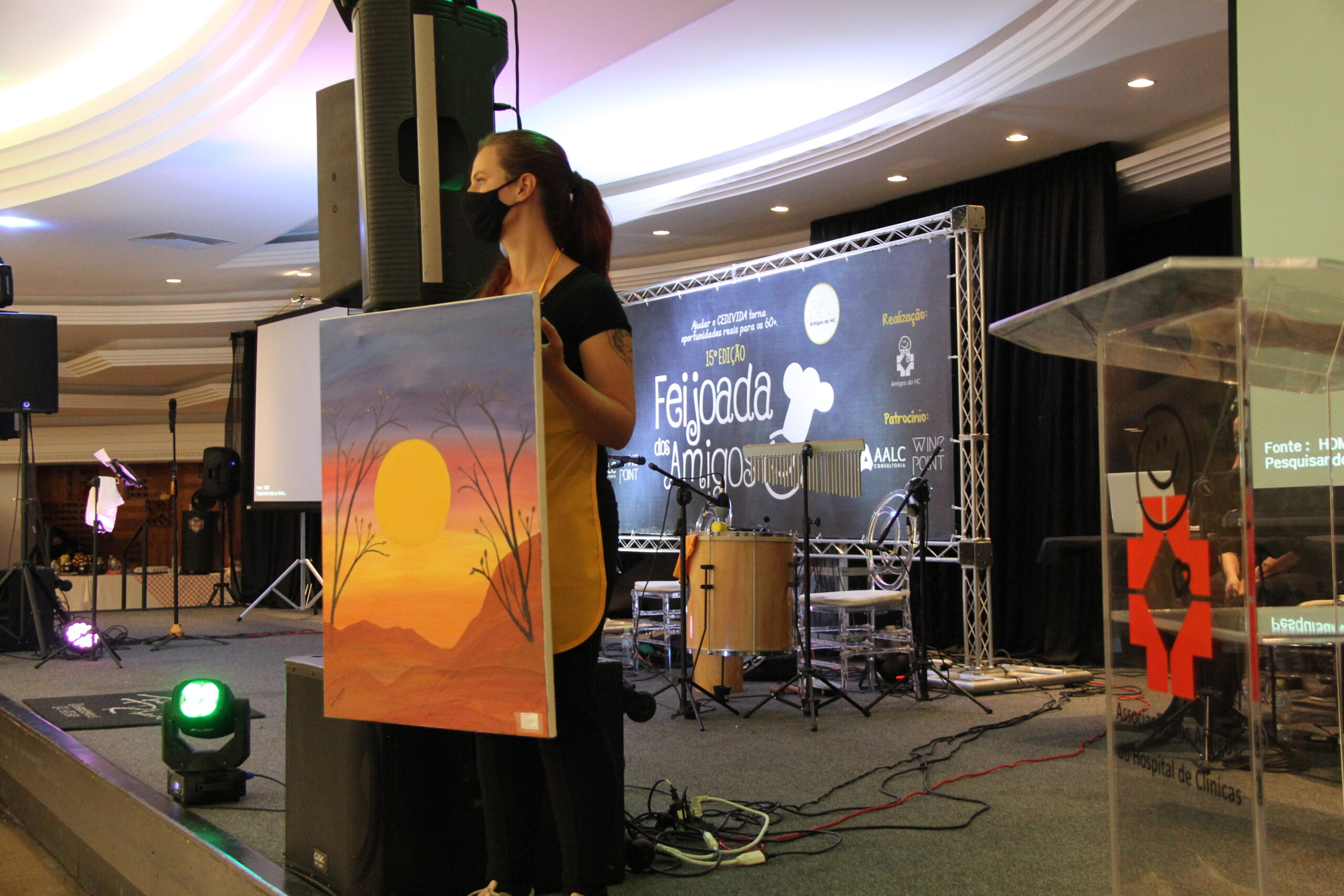 Com banda ao vivo de pagode, do Fernando Ribeiro para animar todos os convidados e 6 tipos de feijoada para atender todos os gostos, o evento também contou com um leilão beneficente ao vivo! Foram feitos os arremates de joias, relógios, faqueiro e entre os itens que tiveram mais destaque, foi o quadro pintado pelo idoso Sr. Rogério que mora a 5 anos e nove meses na Instituição de Longa Permanência Socorro aos Necessitados e começou a pintar por hobby com o incentivo do Lar do Recanto dos Idosos em montar um ateliê de pintura para ele e outros idosos que tivessem interesse pela arte.