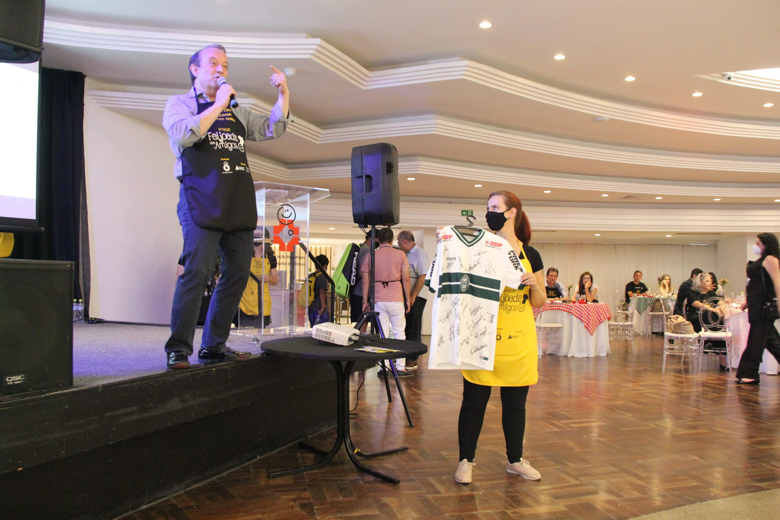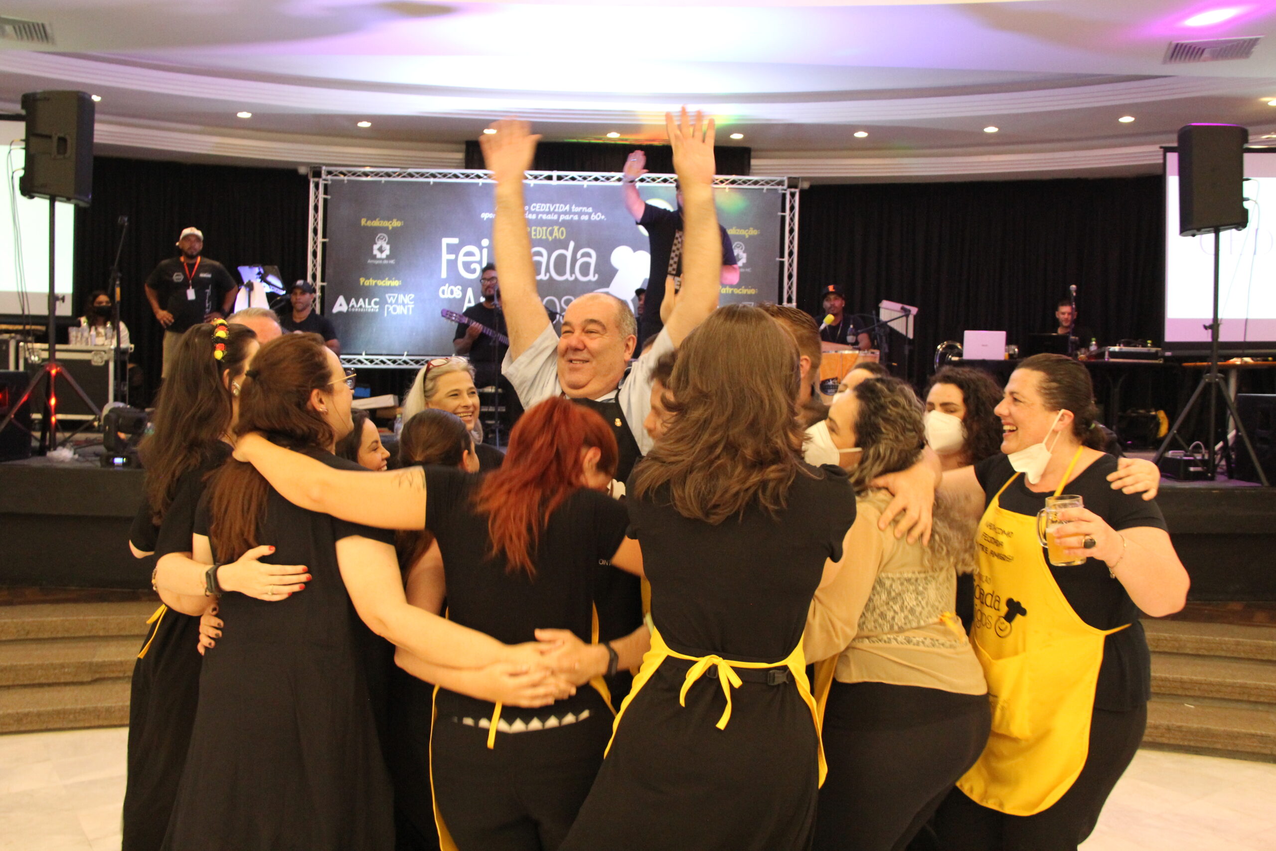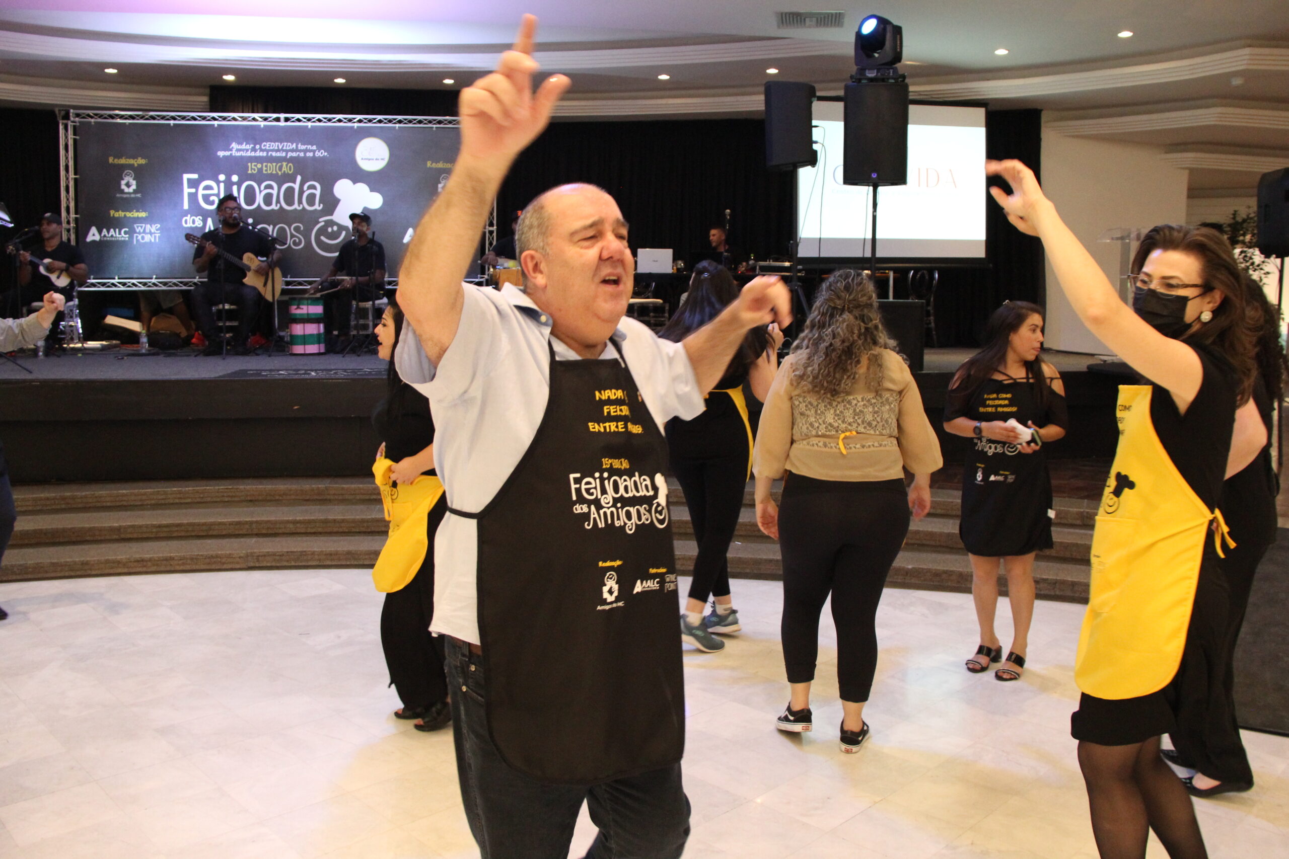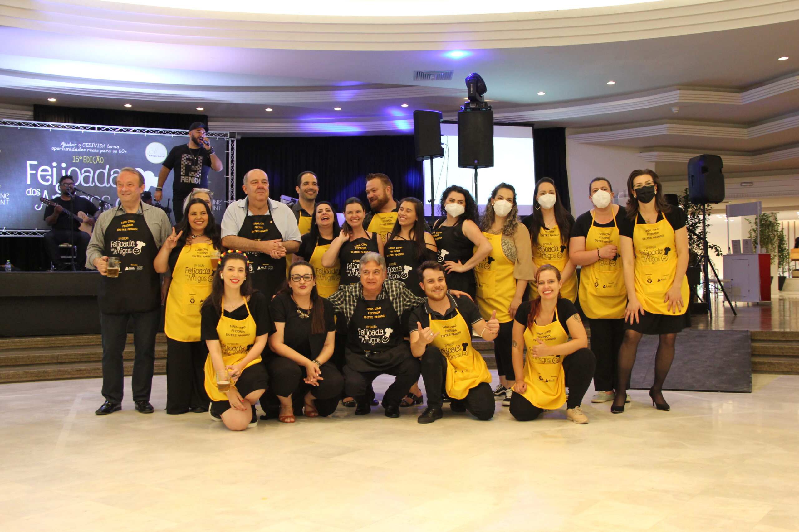 A 15ª Feijoada dos Amigos do HC aconteceu no último sábado (27), no Clube Curitibano, Salão Rubens Arles Bettega – Salão Azul, com convidados, parceiros e comunidade, após quase dois anos sem eventos presenciais durante o período de pandemia do COVID 19. A edição deste ano do tradicional evento da Associação contou com a parceria da WINE Point, AALC Consultoria e apoios do Centro Europeu – escola de gastronomia, Bar do Alemão, Grupo DataCenso, Queens, Frimesa, Farmácia Panvel, Cooperante, Joergensen Empório, Banda Fernando Ribeiro e Banda, Tissot Eventos, Lamaster, Carne Nobre, Confeitaria Acapulco, Casa de Bolos AHÚ e Lar Recanto dos Idosos, realizada em comemoração aos 35 anos dos Amigos do HC e a sua causa: O Programa CEDIVIDA, de Atenção à Pessoa Idosa. A renda arrecadada com os ingressos será destinada aos projetos do Programa CEDIVIDA e a construção do espaço físico, para atendimento gratuito à população 60+.