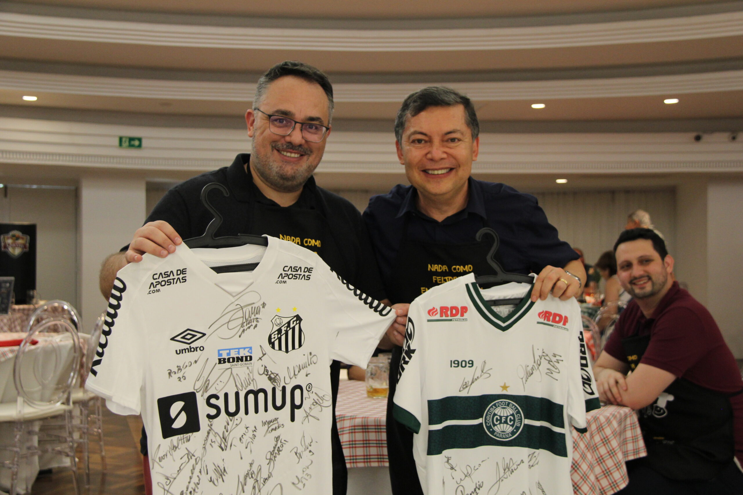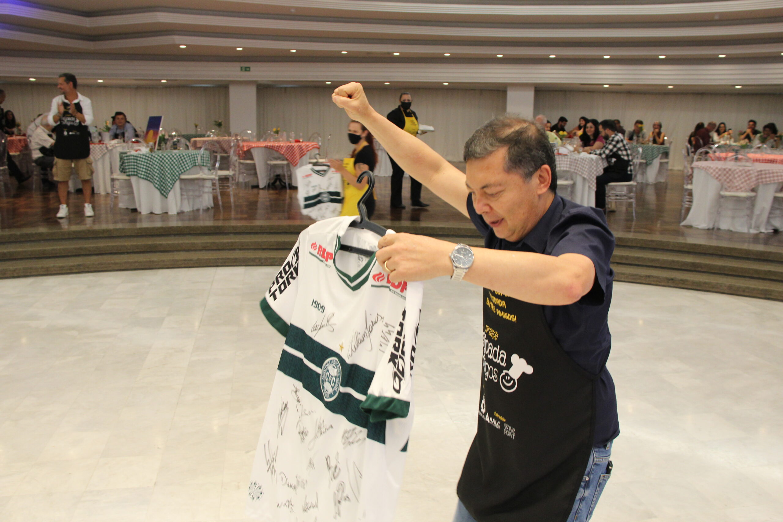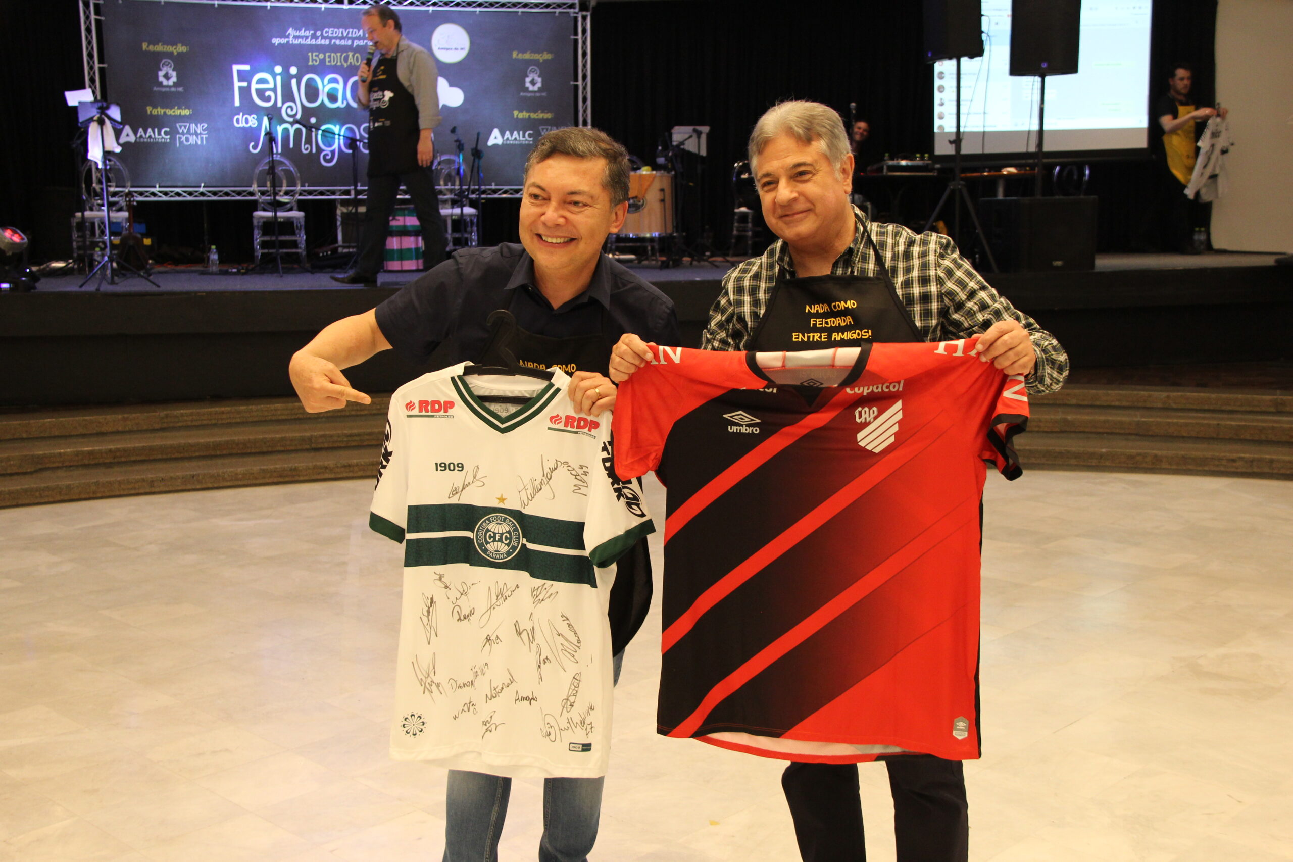 Outros itens que contaram com a competição saudável e a alegria dos participantes foram as camisetas de futebol autografadas! Teve dancinhas da vitória do arremate, teve incentivo para aumentar o valor arrecadado para os times concorrentes, teve o hino dos times e muita festa!