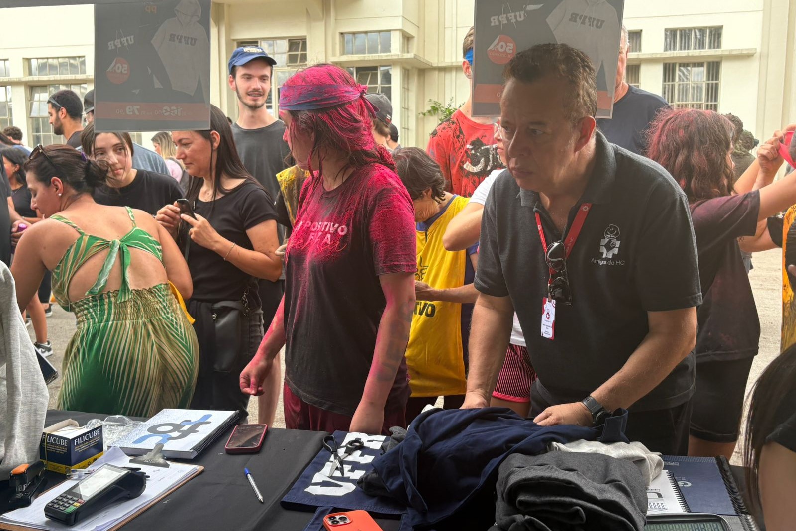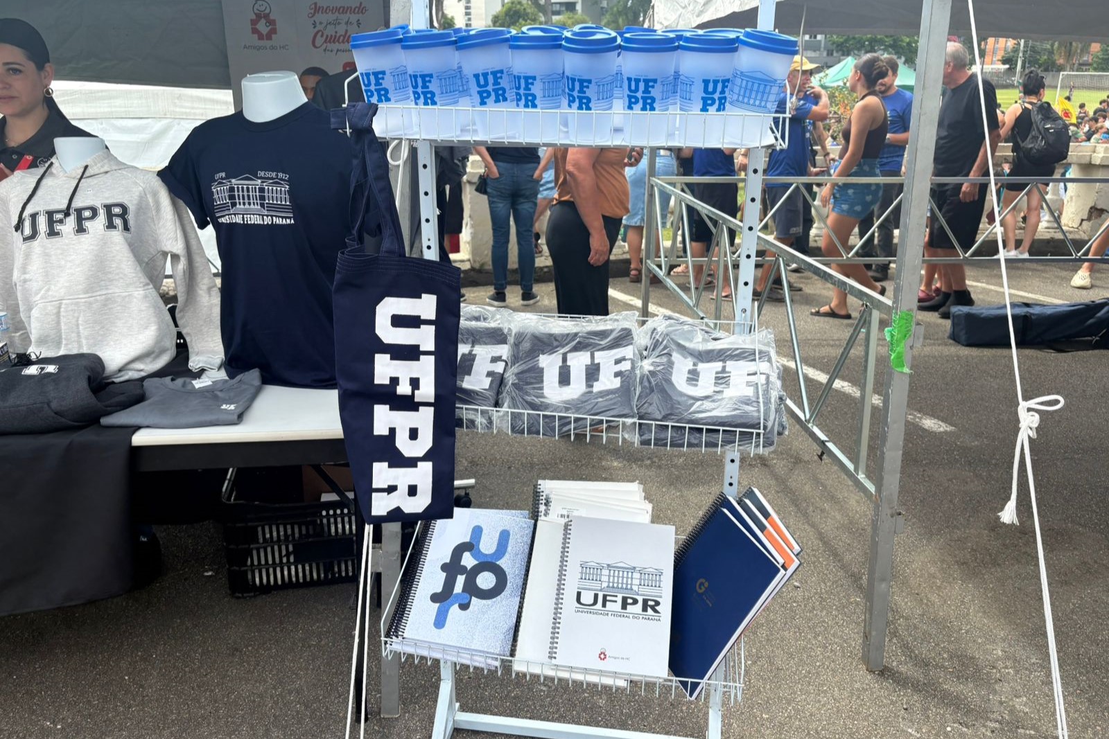 Presente nesse momento simbólico, o Amigos do HC participou da celebração promovendo uma ação que uniu memória, pertencimento e solidariedade. A instituição esteve no evento com a venda exclusiva de itens oficiais da UFPR, como camisetas, moletons, cadernos e outros produtos, reforçando o orgulho de fazer parte da universidade.