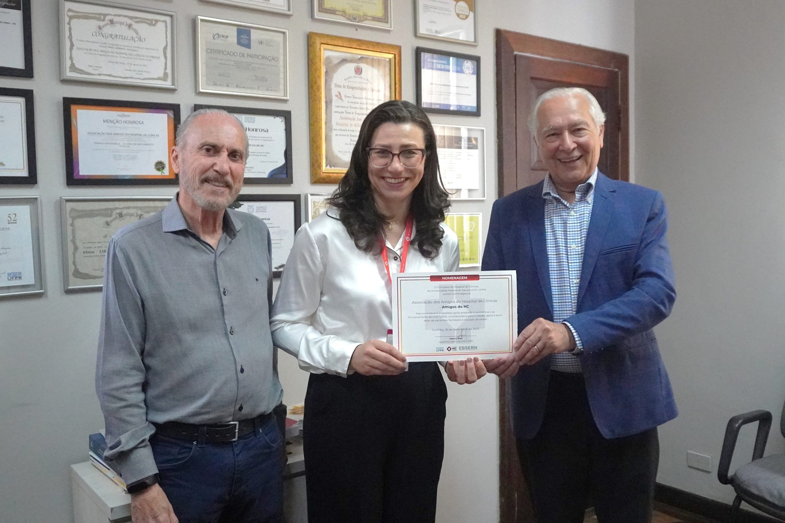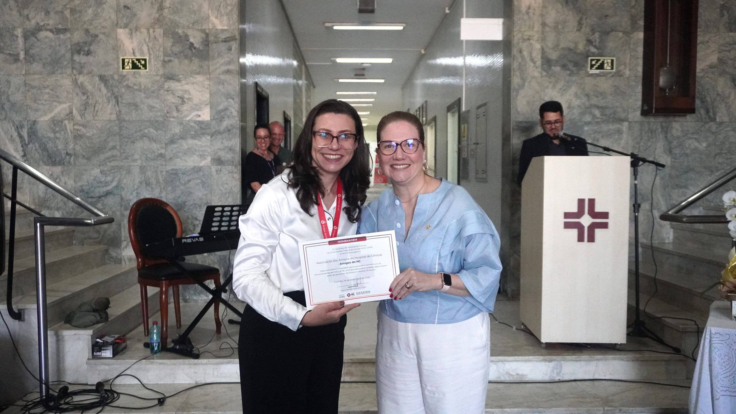 Durante o encontro, os Amigos do HC foram homenageados pelo trabalho contínuo desenvolvido em prol da assistência hospitalar, contribuindo de forma significativa para o funcionamento do CHC-UFPR. A entidade atua no apoio a projetos, aquisição de equipamentos, melhorias estruturais e ações voltadas ao acolhimento de pacientes e familiares, colaborando diretamente para a qualidade dos serviços prestados à comunidade.
