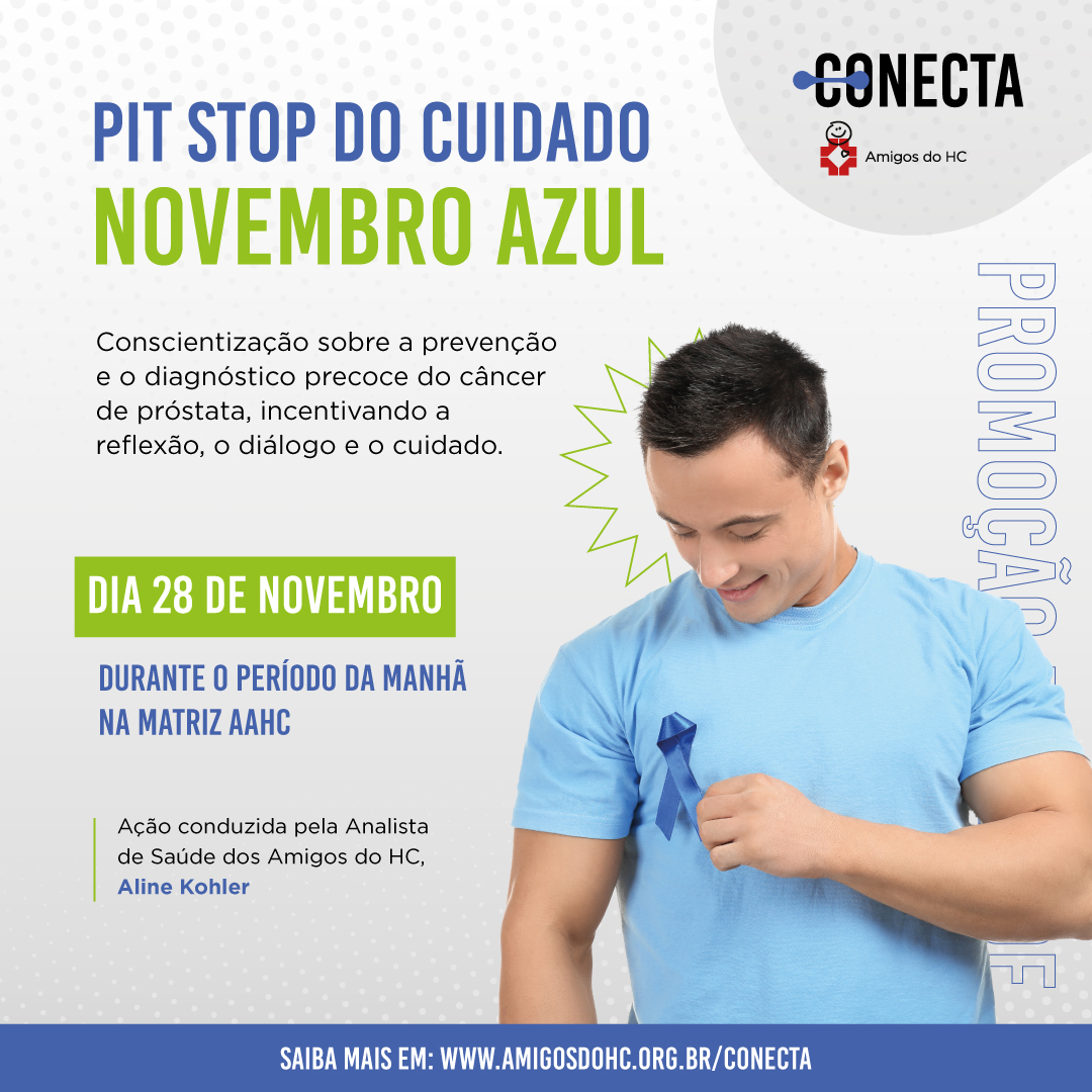 No dia 28 de novembro, o Programa Conecta promoveu o Pit Stop do Cuidado – Novembro Azul, uma ação dedicada à conscientização e prevenção do câncer de próstata. A atividade foi conduzida pela analista de saúde Aline Kholer e proporcionou um momento de orientação e diálogo sobre os cuidados com a saúde do homem.